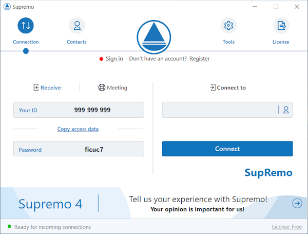 Supremo is free for non-professional and/or non-continuous use and offers a 21-days free trial. For professional or continuous use is the most affordable software: its pricing starts at $6.00 per user per month and licenses can be purchased quarterly or annually. Each license can be activated on an unlimited number of devices and can be used by unlimited users. Licences can be configured on the basis of the number of remote connections you use and this number is the only constraint on Supremo's plans.
