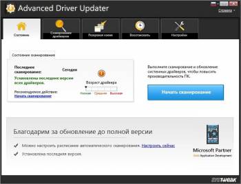 Advanced Driver Updater is an update tool for most devices of a modern computer system. The program was developed by the famous software company Systweak, which specializes in creating software for Windows. This time, the product’s functionality is focused on monitoring, loading and updating the status of system drivers. The set of functions is quite ordinary - a scanner, backup and recovery modules, detailed information about the drivers available for download.